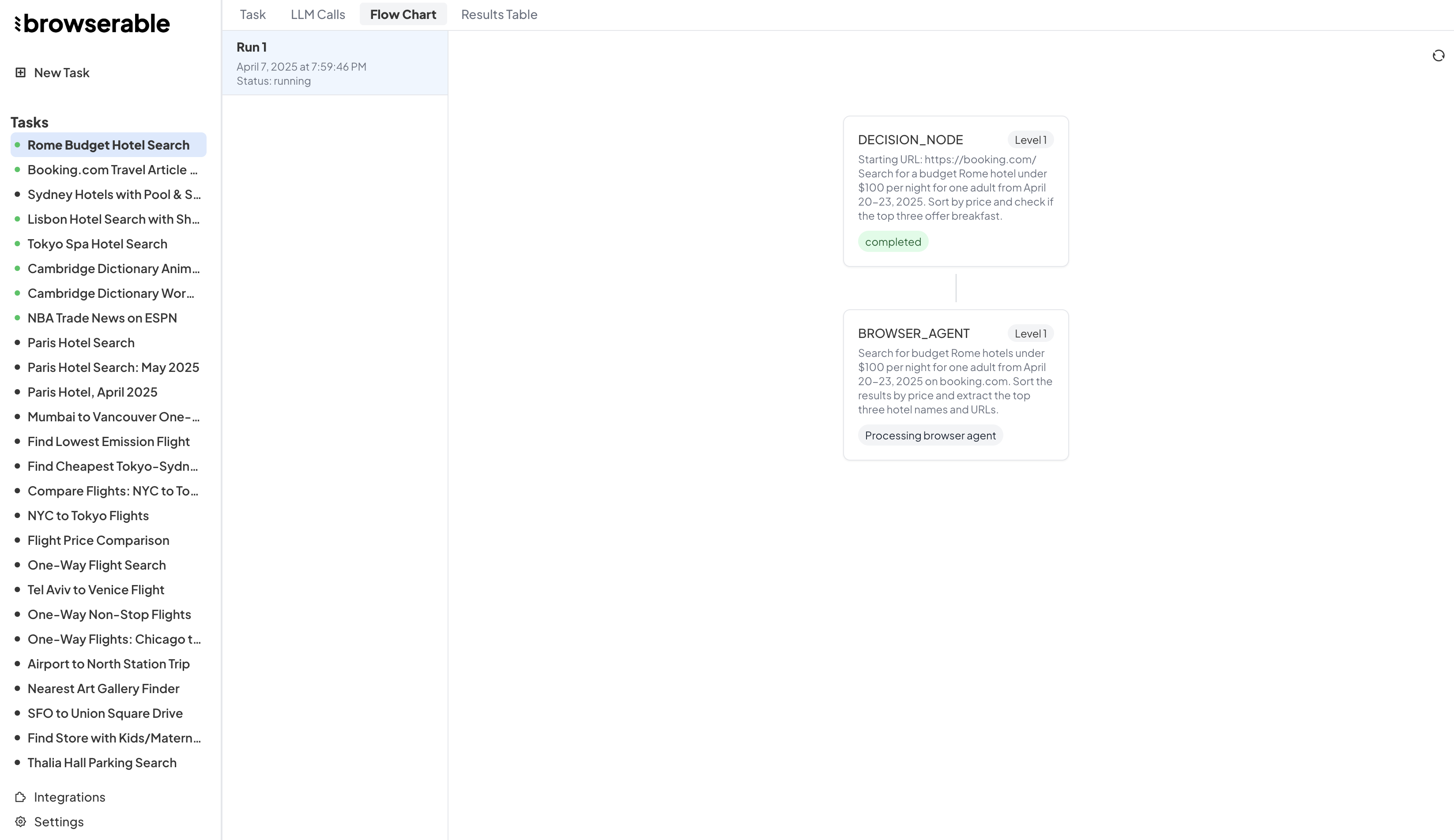 The flow chart interface provides a visual representation of task workflows and dependencies.